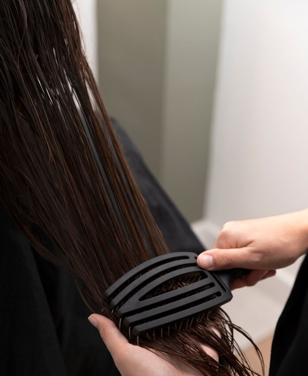 Cepíllate con suavidad: utiliza un peine de dientes anchos o un cepillo diseñado específicamente para extensiones. Comienza desde las puntas y ve avanzando hacia arriba para evitar que se rompan.