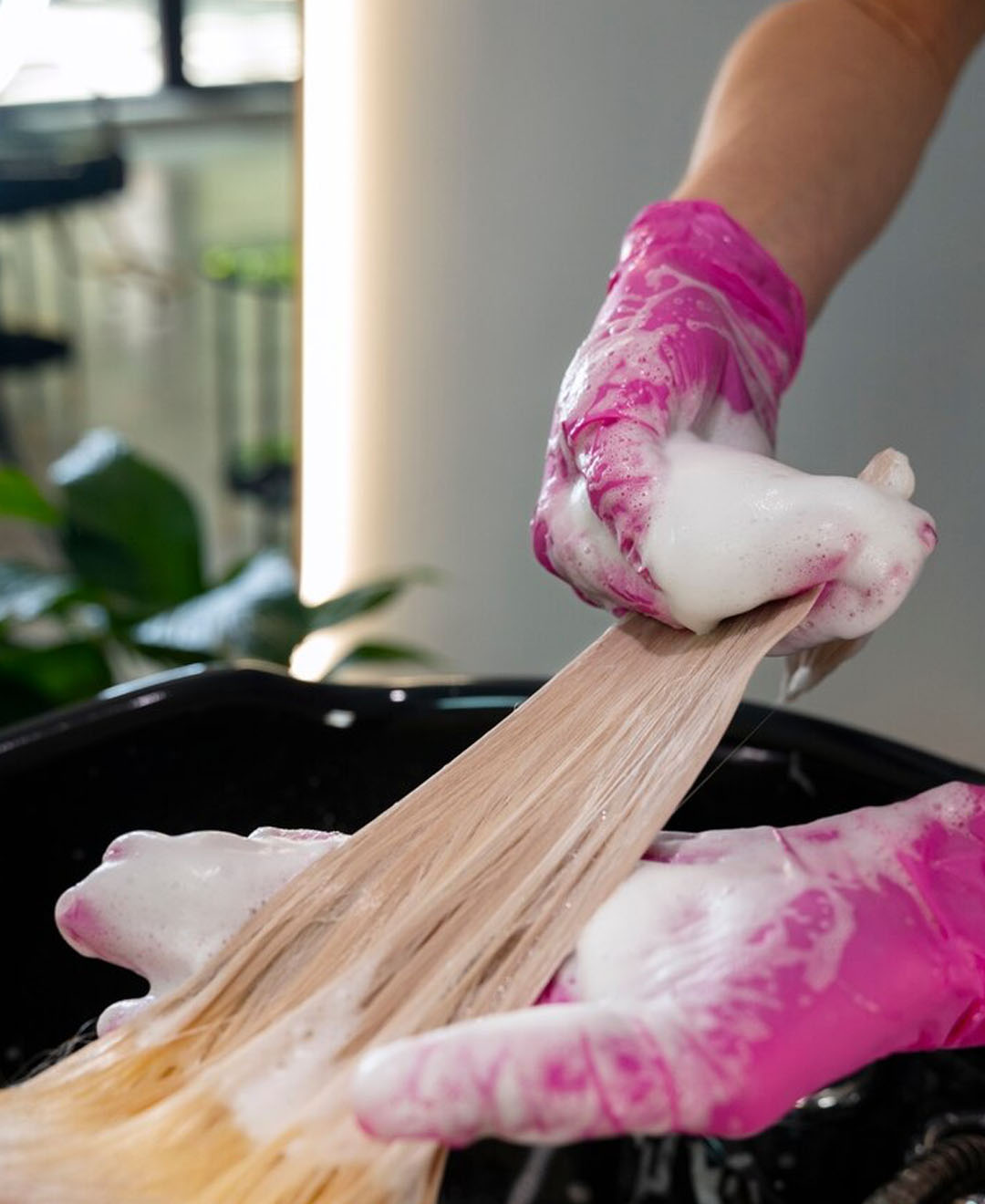 Técnica: Evite frotar o retorcer las extensiones. Enjuague bien con agua a temperatura ambiente.